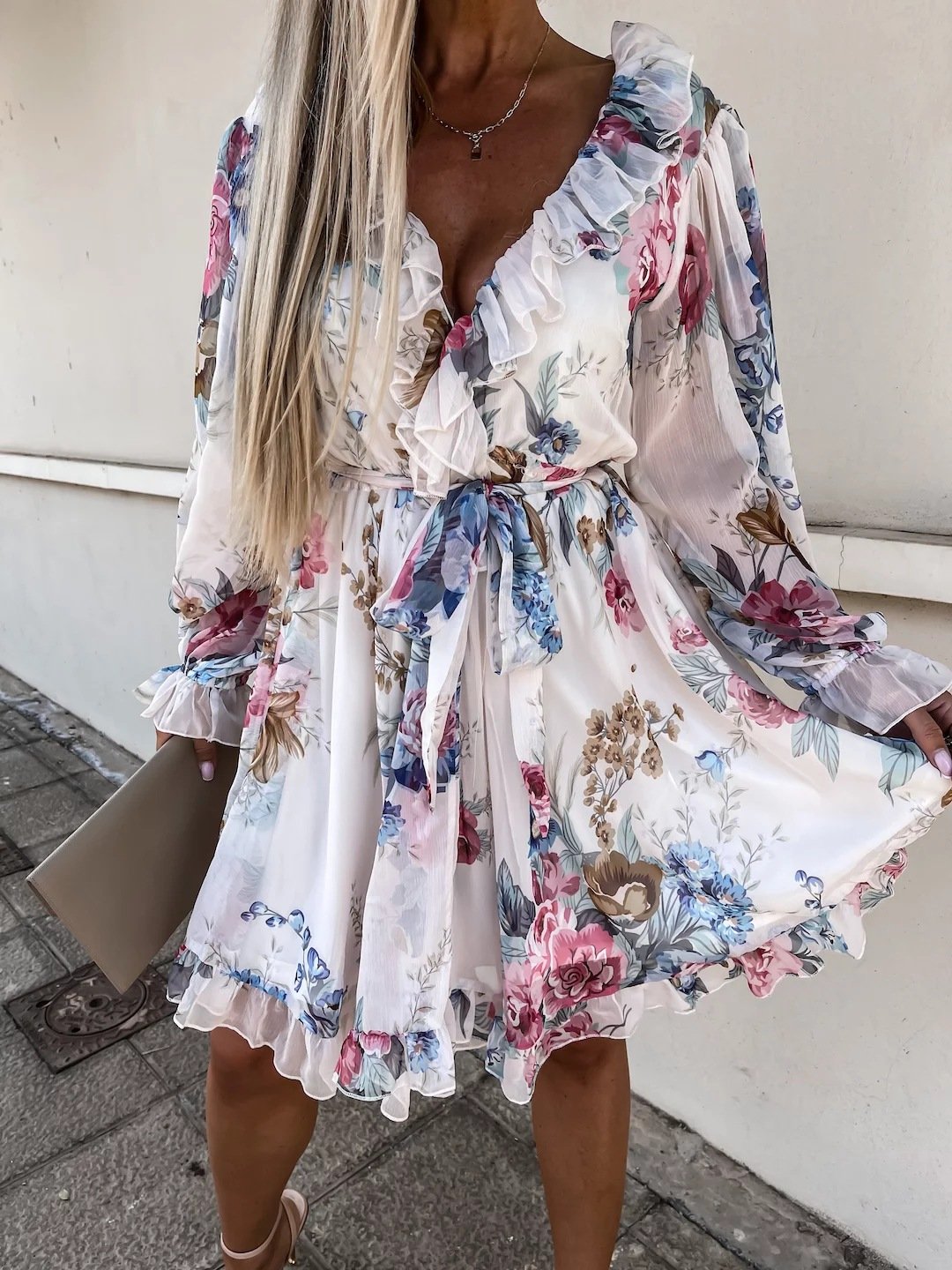 Embrace style and comfort with our V-Neck Printed Long Sleeve Nipped Waist Dress. It's not just a dress; it's an expression of your unique style!
